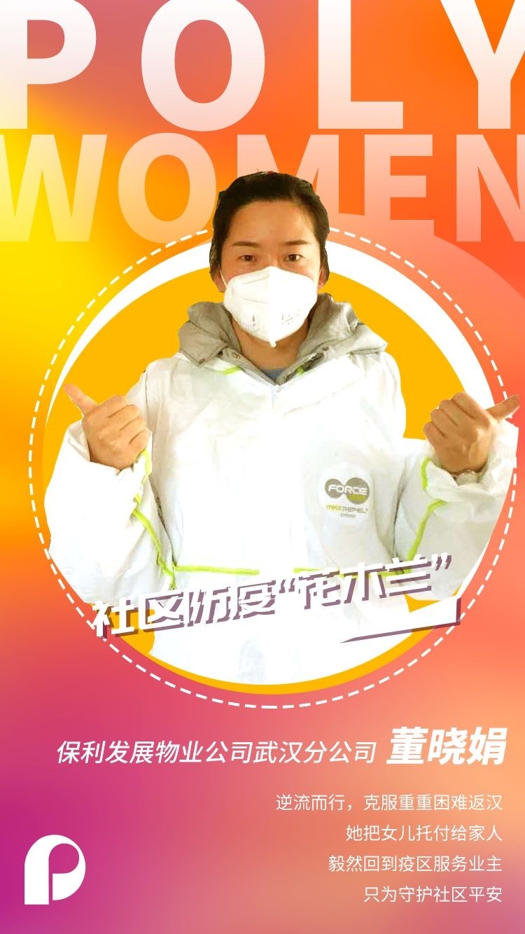 Dong Xiaojuan, working in a Wuhan’s company subordinated to Poly Property Group Co., Ltd., overcame many difficulties in sending her daughter to her family in Wuhan before resolutely returning to the affected area to serve the property owners, and to protect the safety of the community.